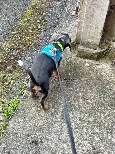 Marilyn started trailing in 2017 with Lola and currently trails with staffy Scout and Dachshund cross Jem.