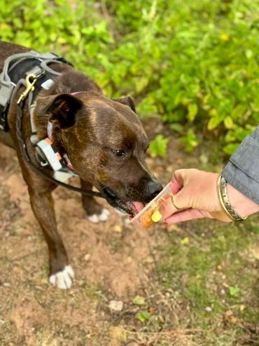 As dogs are worked individually we are able to welcome dogs with behaviour struggles into sessions. Whether they’re worried by dogs, people, squirrels…we can get them trailing!
